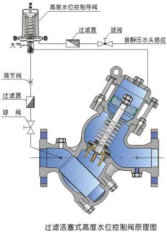 | 詳細(xì)內(nèi)容: 一、概述: YQ98007過濾活塞式高度水位控制閥利用水箱(水塔)設(shè)定的高低水位的靜壓水頭之差,通過水位高度導(dǎo)閥來控制主閥敏感元件活塞的上下運(yùn)動(dòng)以達(dá)到主閥的啟閥。當(dāng)水箱的水位升到設(shè)定的高水位時(shí),主閥關(guān)閉,停止向水箱供水;當(dāng)水箱下降到低水位時(shí),主閥打開,向水箱供水。通過調(diào)節(jié)高度水位導(dǎo)閥的調(diào)節(jié)螺桿,可以設(shè)定高低水位。 過濾活塞式高度水位控制閥廣泛用于建筑給水、消防、工礦企業(yè)上的水池、水塔、水箱代替以往的液面控制閥,而無需浮球(電浮球)和電器控制、純機(jī)械水力控制,安全可靠。 二、過濾活塞式高度水位控制閥特點(diǎn): 1、純機(jī)械水力操作,取消了浮球(電浮球)和電器控制,克服以往水位控制閥頻繁啟閉的缺點(diǎn),利用水池水位變化,靜壓水頭之差、控制主閥啟閉、控制安全、可靠、準(zhǔn)確。 如使用在海水中訂貸時(shí)需注明。 三、過濾活塞式高度水位控制閥主要技術(shù)參數(shù)和主要零件材料: