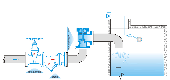 | 詳細內容: 一、H142X液壓水位控制閥簡介: H142X液壓水位控制閥是一種自動控制水箱、水塔液面高度的水力控制閥。當水面下降超過預設直時,浮球閥打開,活塞上腔室壓力降低。活塞上下形成壓差,在此壓差作用下閥瓣打開進行供水作業;當水位上升到預設高度時,浮球閥關閉,活塞上腔室壓力不斷增大致使閥瓣關閉停止供水。如此往復自動控制液面在設定高度,實現自動供水功能。 二、H142X液壓水位控制閥的工作原理: 當水池或水塔內水位下降,浮球閥開啟排水時,進水管內有壓水將閥內活塞托起,密封面打開,閥門即開啟供水,當水位上升到控制閥時,浮球閥關閉,活塞下移將密封面封閉,閥門即停止供水。 三、H142X液壓水位控制閥的特點: 1、運用液壓原理控制,結構新穎合理。 2、工作平穩可靠。在規定的使用壓力范圍內,可保證無水錘沖擊。 3、重量輕,體積小。 4、安裝維修方便。 四、H142X液壓水位控制閥的主要性能參數:
